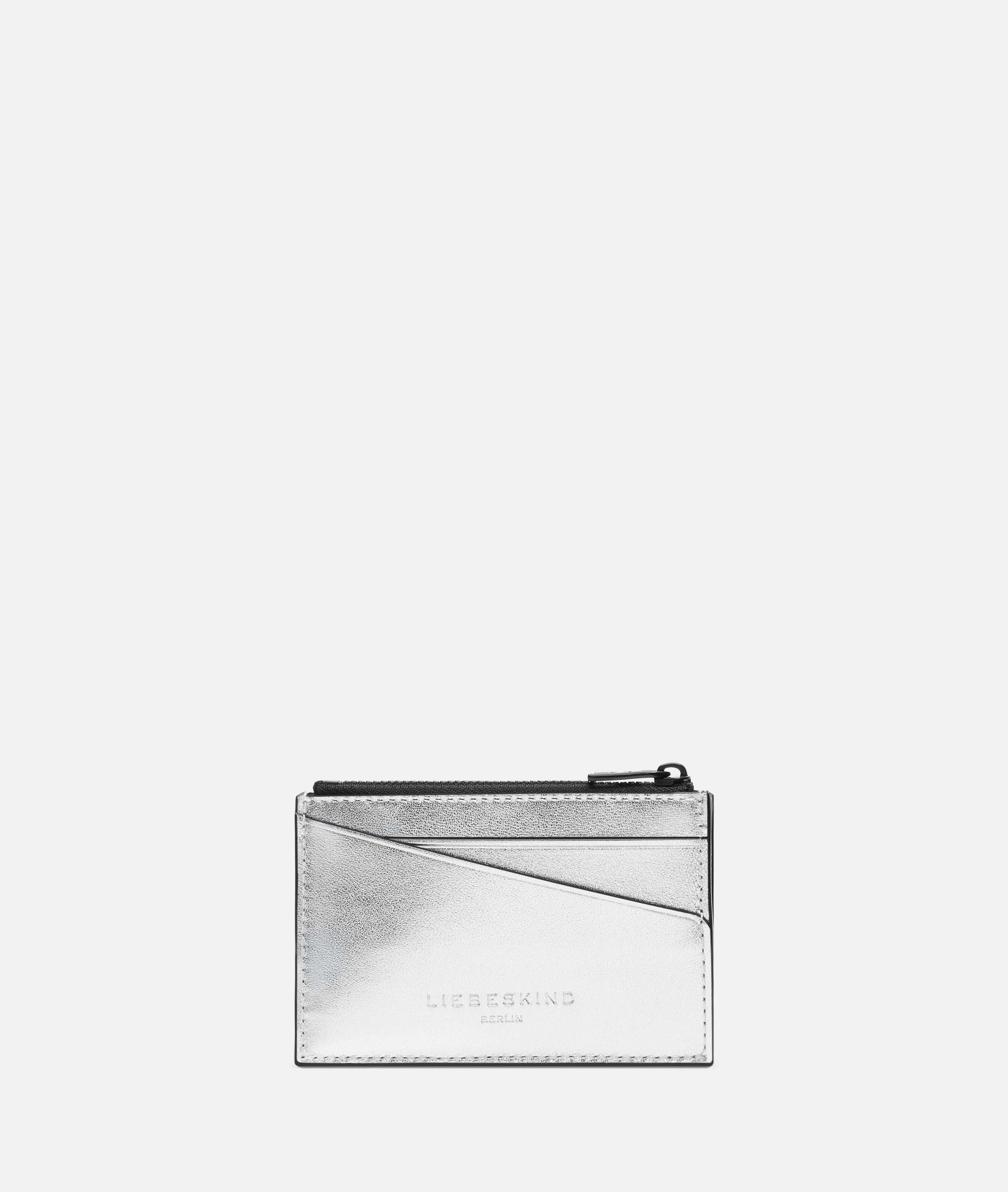 Kartenhalter mit Münzfach aus Leder im Metallic-Look
