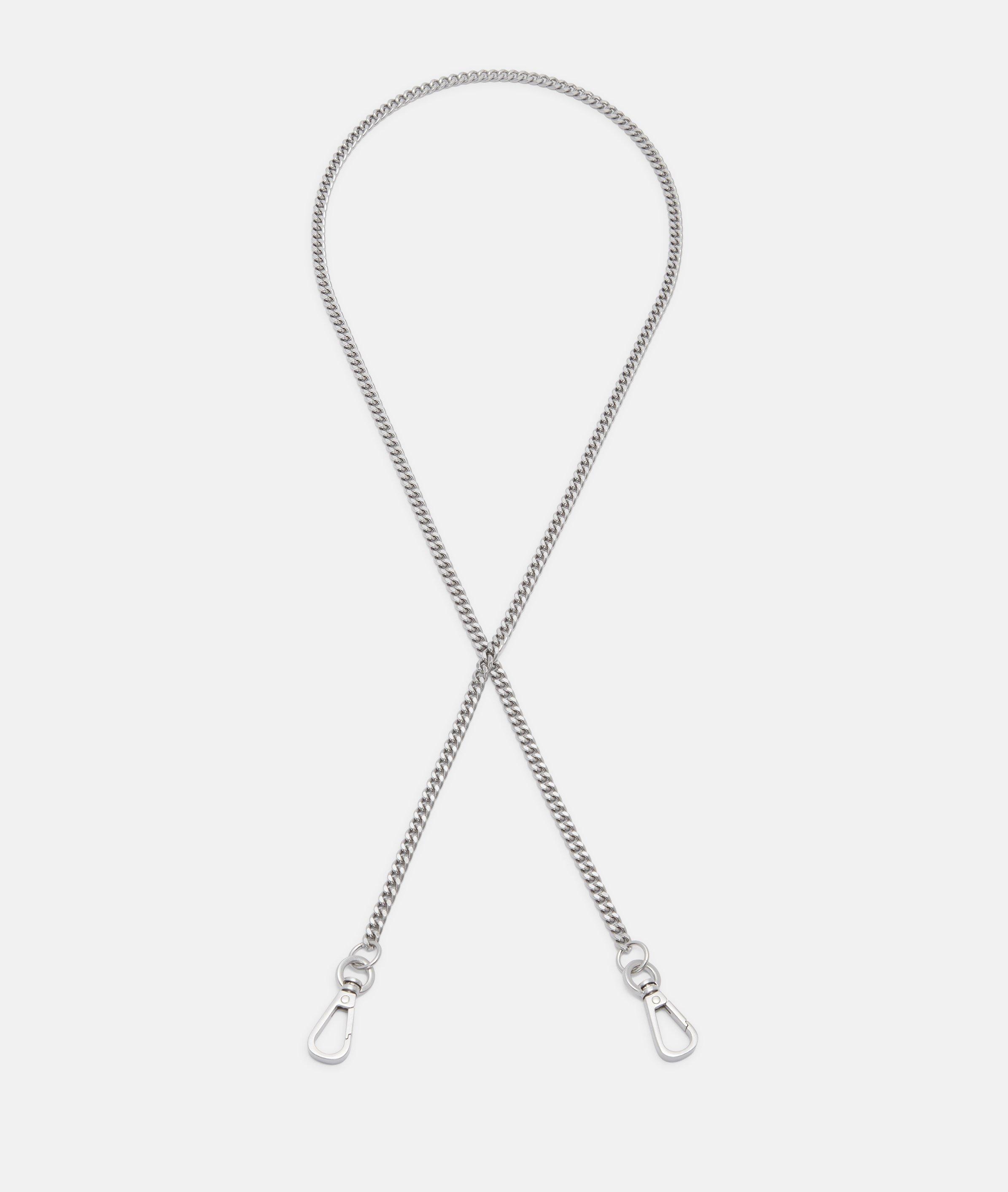 Ein Statement mit Funktion: Dieser Schultergurt aus Metall verleiht deiner Tasche ein neues Level an Ausdruck. Die fein gearbeiteten Glieder schaffen eine markante Verbindung zwischen Form und Funktion – mal reduziert, mal als glänzender Akzent. Dank der Karabiner lässt sich der Gurt unkompliziert an verschiedenen Taschen befestigen und sorgt sofort für einen neuen Look.